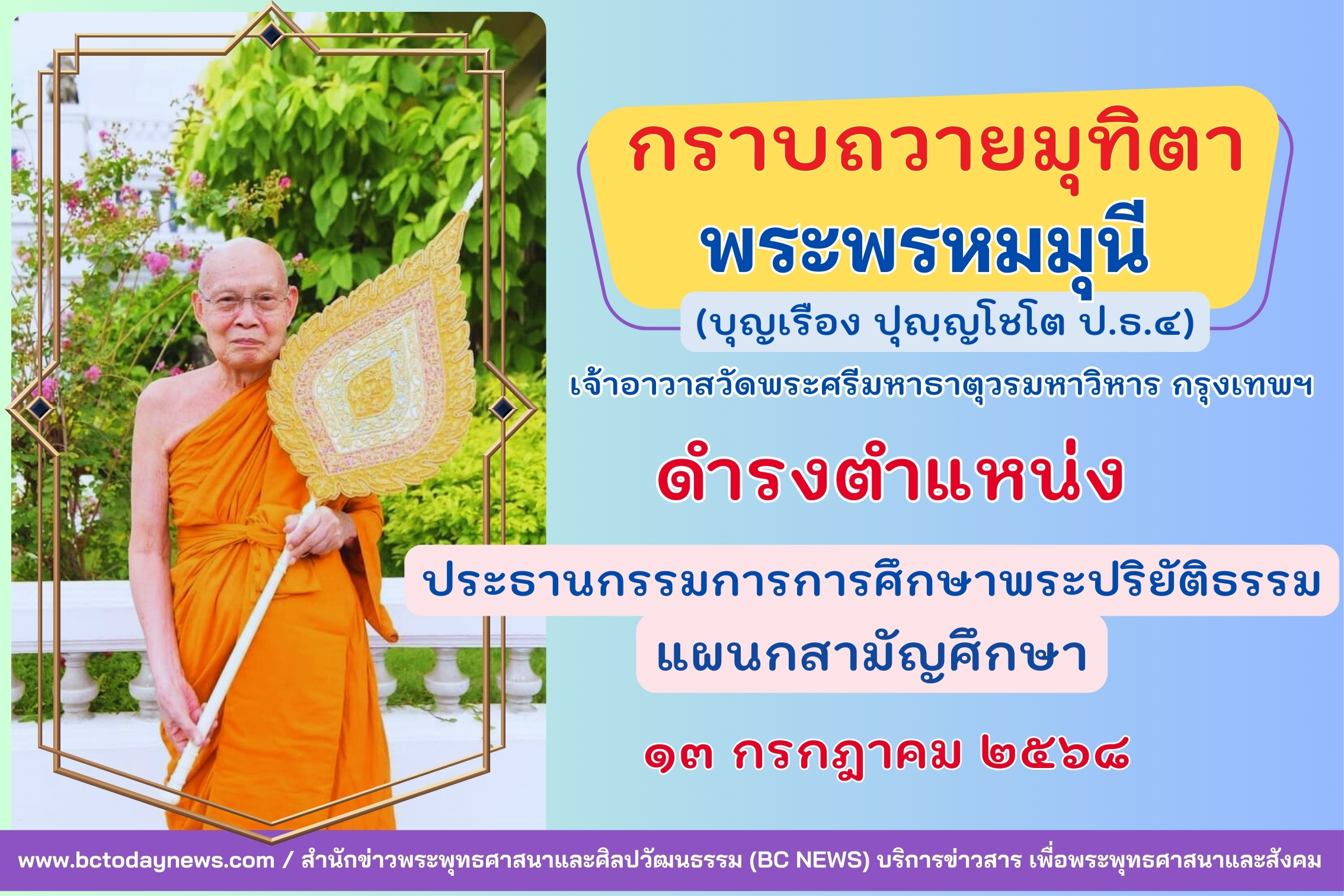 โดยในมติแต่งตั้ง พระพรหมมุนี เจ้าอาวาสวัดพระศรีมหาธาตุวรมหาวิหาร กรุงเทพฯ ดำรงตำแหน่ง ประธานกรรมการการศึกษาพระปริยัติธรรม แผนกสามัญศึกษา รูปใหม่